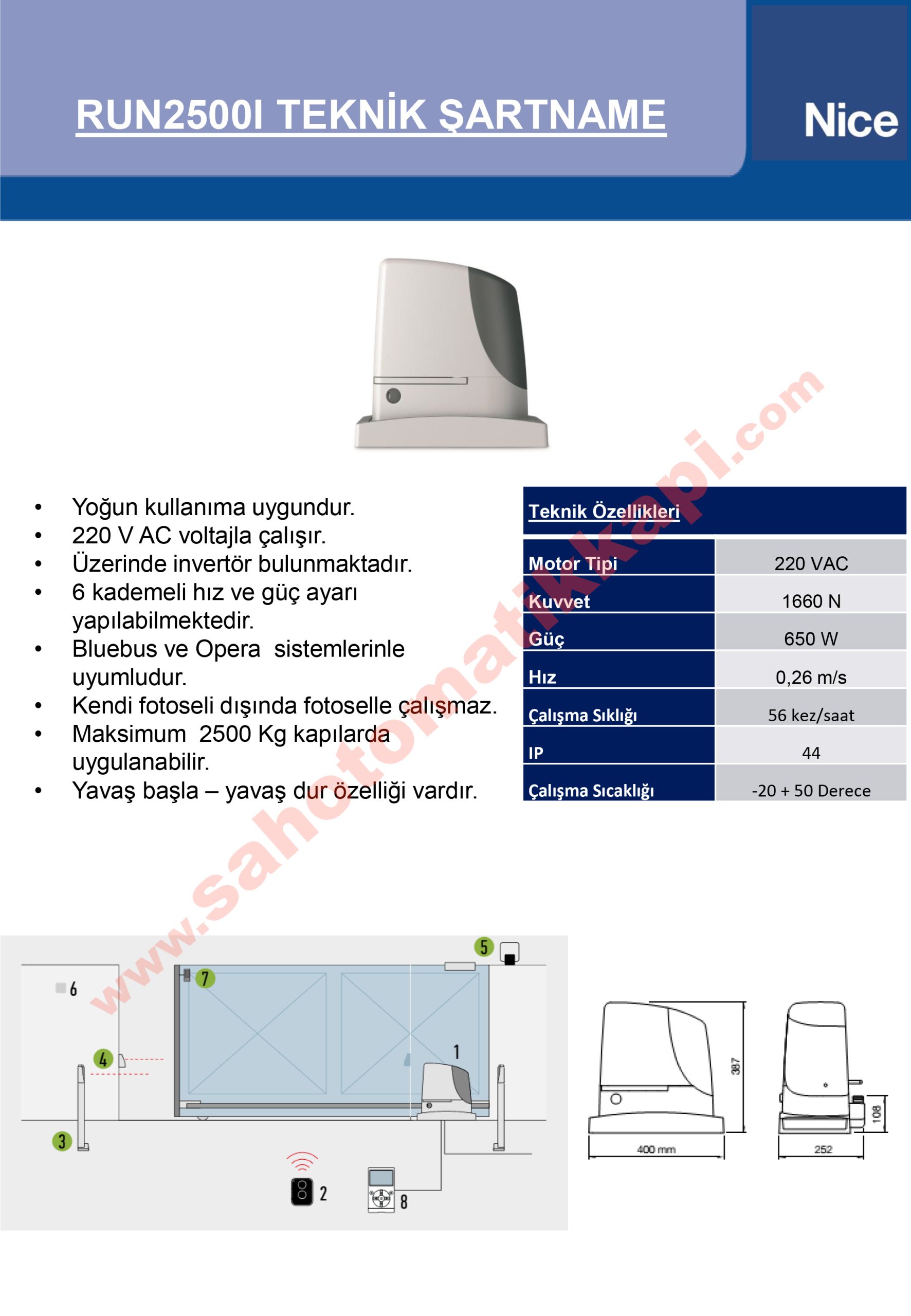 Adana’da Nice Run 2500I İnvertörlü satış, montaj ve teknik servis hizmetleri sunuyoruz. Profesyonel kurulum desteğimiz ile otomatik kapı sistemlerinizi güvenli ve sorunsuz hale getiriyoruz.
